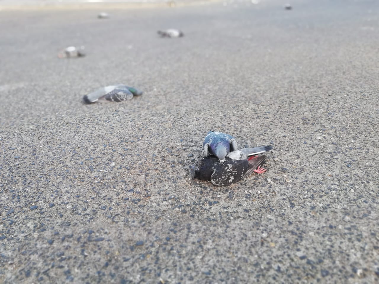 എന്നാല് ഇന്നലെ രാവിലെ ഇങ്ങനെ വന്ന പ്രാവുകളില് പലതും ഭക്ഷണം കൊത്തി അധികം കഴിയുംമുമ്പെ കുഴഞ്ഞുവീഴുകയും പിന്നീട് ചാവുകയുമായിരുന്നു. ഇതുകണ്ട് ആളുകള് പോയി നോക്കുമ്പോള് ഭക്ഷണം കൊത്തിത്തിന്നവയാണ് ചത്തുവീണതെന്ന് മനസ്സിലായി. മന്തിച്ചോറും, ഗോതമ്പും, സൂപ്പര് മാര്ക്കറ്റില് കിട്ടുന്ന പക്ഷിത്തീറ്റകളുമെല്ലാം ഇന്നലെ വിതറിയ ഭക്ഷണത്തിലുണ്ടായിരുന്നു. കൂടാതെ പാത്രങ്ങളില് വെള്ളവും നിറച്ചിരുന്നു. ഇതില് ഏതാണ് പ്രാവുകള് ചാവാന് കാരണമായതെന്ന് വ്യക്തമല്ല.