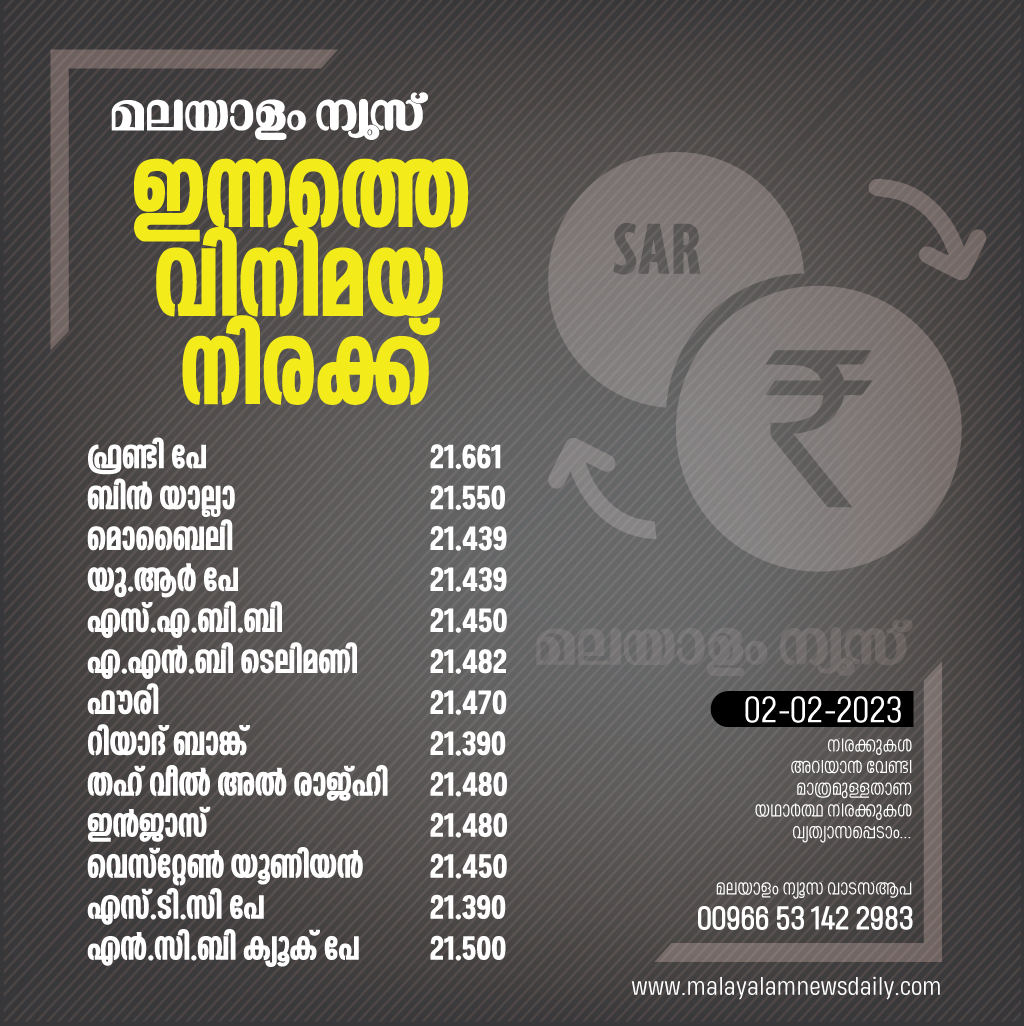 ഇന്നത്തെ സൗദി റിയാൽ വിനിമയ നിരക്ക് അറിയാം