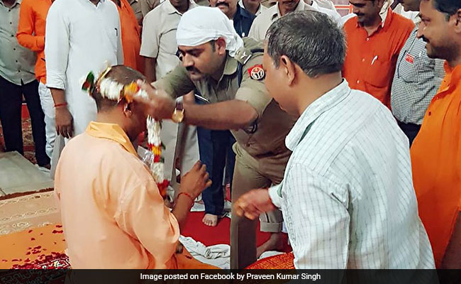 ഗോരഖ്നാഥ് മേഖലയിലെ സർക്കിൾ ഇൻസ്പെക്ടറാണ് പ്രവീൺ കുമാർ. ഈ മേഖലയിലെ നിരവധി പോലീസ് സ്റ്റേഷനുകൾ ഇദ്ദേഹത്തിന് കീഴിലാണ്. യോഗി ആദിത്യനാഥിൽനിന്ന് അനുഗ്രഹം തേടിയെന്നാണ് ഫീലിംഗ് ബ്ലസ്ഡ് എന്ന തലക്കെട്ടിൽ പോലീസുകാരൻ ഫെയ്സ്ബുക്കിൽ പോസ്റ്റിട്ടത്. ഗുരു പൂർണിമയോടനുബന്ധിച്ചായിരുന്നു ചടങ്ങ്. പോലീസുകാരൻ മുഖ്യമന്ത്രിയുടെ നെറ്റിയിൽ തിലകം ചാർത്തുന്നതും മുഖ്യമന്ത്രിക്ക് മാല ചാർത്തുന്നതും ചിത്രങ്ങളിലുണ്ട്. പോലീസ് യൂണിഫോമിൽ നടന്ന ചടങ്ങിനെതിരെ സോഷ്യൽ മീഡിയയിൽ വൻ പ്രതിഷേധം ഉയർന്നിട്ടുണ്ട്.
