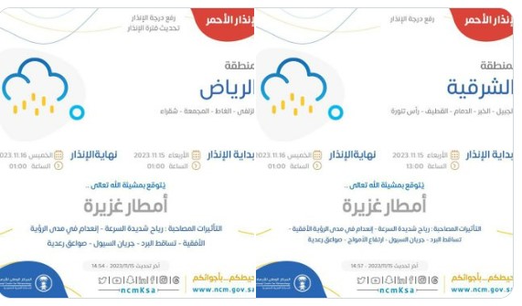 റിയാദ്- കാലാവസ്ഥ നിരീക്ഷണ വകുപ്പിന്റെ മുന്നറിയിപ്പിനെ തുടർന്ന് റിയാദിലും കിഴക്കൻ പ്രവിശ്യയിലും റെഡ് അലർട്ട് പ്രഖ്യാപിച്ചു. കനത്ത കാറ്റും ആലിപ്പഴ വർഷവും ഇടിമിന്നലിനും സാധ്യതയുണ്ടെന്ന് കാലാവസ്ഥ നിരീക്ഷണ വകുപ്പ് അറിയിച്ചു. നാളെ(വ്യാഴം)ഉച്ചക്ക് ഒരു മണി വരെയാണ് റെഡ് അലർട്ട് പ്രഖ്യാപിച്ചത്.